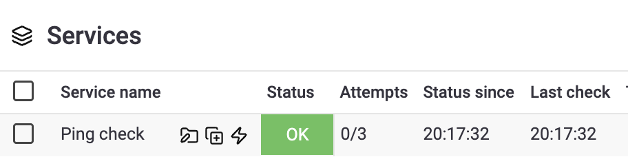 Once the check is created, it usually doesn’t take long until the status of the service switches to OK — provided the ping can successfully reach the IP address.